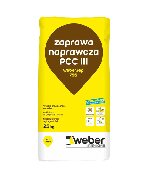 Weber.rep 756 jest zaprawą o grubym kruszywie, służącą w szczególności do wypełniania większych ubytków w czasie renowacji betonów. Stosowana może być zarówno na wewnętrznych, jak i zewnętrznych powierzchniach. weber.rep 756 pozwala się lekko i dobrze obrabiać. Weber.rep 756 może być także stosowany jako materiał do osadzania krawężników drogowych.