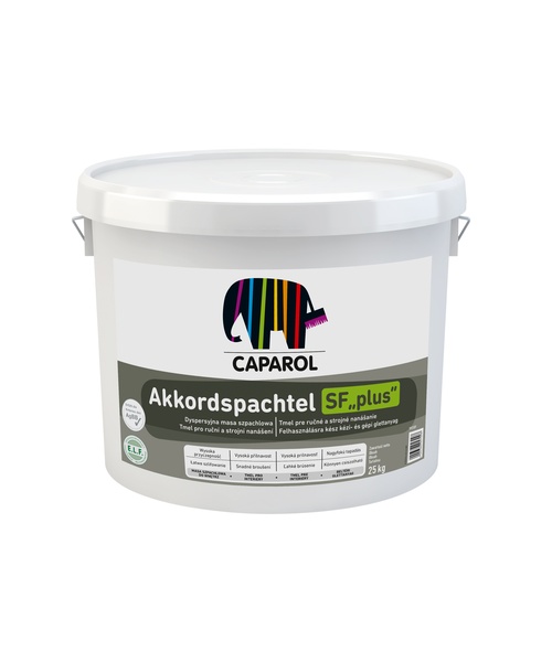 Całą powierzchnię należy obficie natryskiwać nierozcieńczoną szpachlówką Caparol-Akkordspachtel SF „plus” i natychmiast wygładzić przy pomocy odpowiedniej blichówki stalowej. Akkordspachtel SF „plus” można filcować na mokro lub szlifować na sucho. Po całkowitym wyschnięciu zaszpachlowanych na gładko powierzchni można je nakrapiać szpachlówką tworząc bardziej lub mniej delikatną fakturę. Wygląd uzyskanej struktury może zmieniać się w zależności od stopnia rozcieńczenia i wielkości zastosowanej dyszy. Nakrapianie stosuje się przeważnie na sufitach, które nie będą poddawane dalszej obróbce.