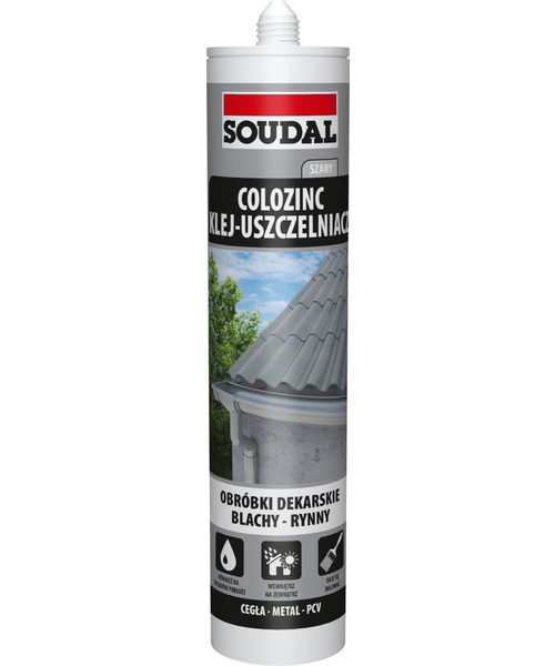 Soudal Colozinc to super mocny klej-uszczelniacz hybrydowy do spajania blachodachówki, blach trapezowych i systemów orynnowania. Odznacza się trwałą elastycznością.