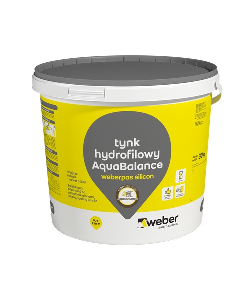 Weber.pas AquaBalance to silikonowy tynk hydrofilowy wykonany w technologii AquaBalance, która zapewnia nieporastającą powłokę. Jest odporny na alkalia, spaliny i bardzo elastyczny. Nie straszne mu zmywanie zanieczyszczeń wodą. Produkt może być barwiony na dowolny kolor pod indywidualne zamówienie. W tym celu skontaktuj się z obsługą sklepu.