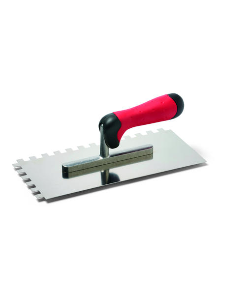 zęby C5 (10×10 mm) — grubsze niż w C2 / C4; pozwalają na wykonanie mocnej i grubszej warstwy kleju lub zaprawy, lepsze pokrycie nierówności podłoża.