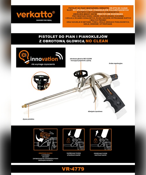 Pistolet do piany NO CLEAN Verkatto nie wymaga czyszczenia